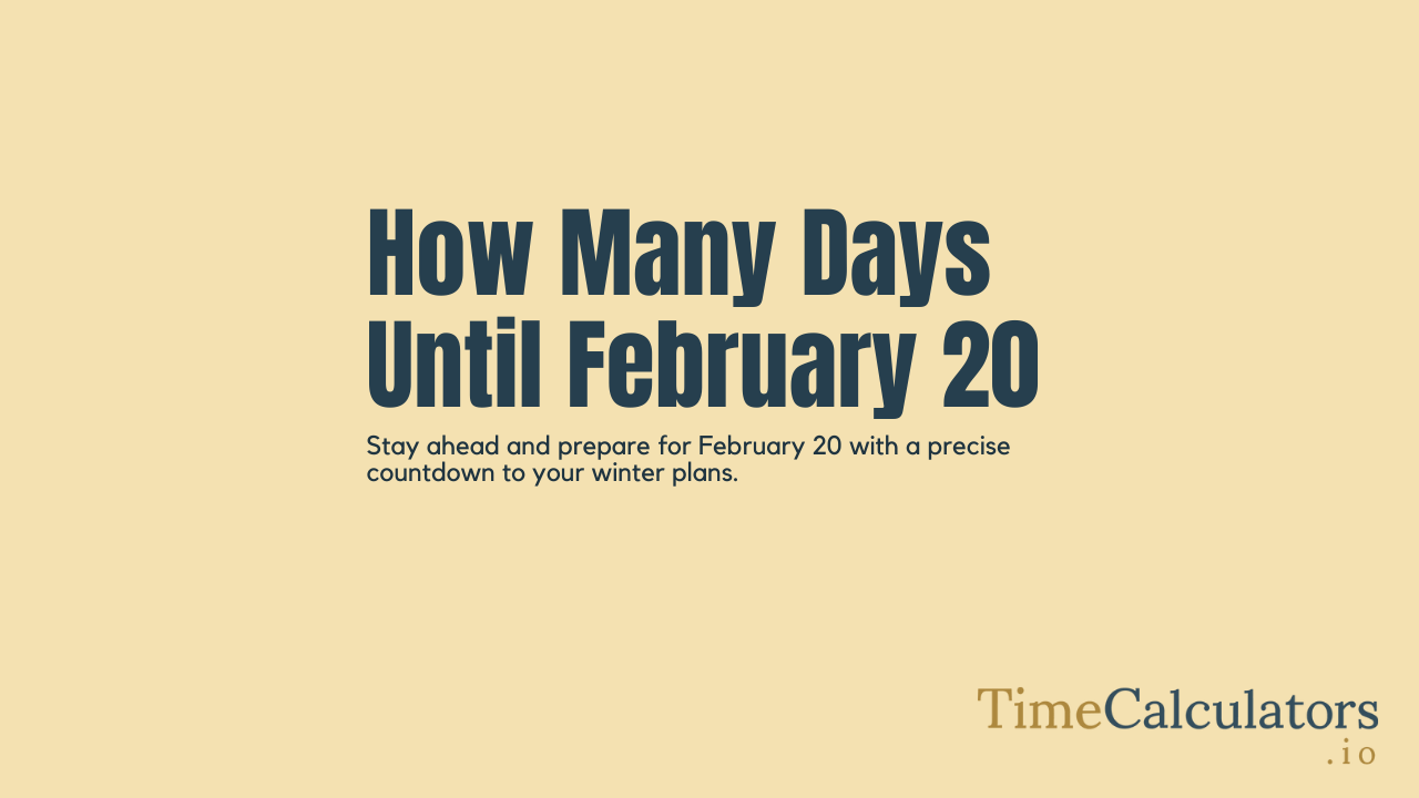 This real-time countdown tool tracks the time until February 20th of the upcoming year. Curious about how many days remain until February 20th? Right now, there are left. Use our countdown timer and calculator below to monitor time or calculate from any date.